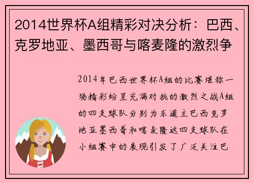 2025-06-29 11:06:48本文将围绕斯洛文尼亚在世界杯中的征程展开回顾与未来展望分析。首先,文章会简要总结斯洛文尼亚在历届世界杯中的表现,包括其亮眼的时刻与遗憾的失利。接着,我们将从球队整体实力、战术布局、球员发展及未来潜力等方面进行深入分析,并辅以数据支持,探讨斯洛文尼亚如何从一个欧洲小国逐步跻身世界足球舞台的中心。此外,...
